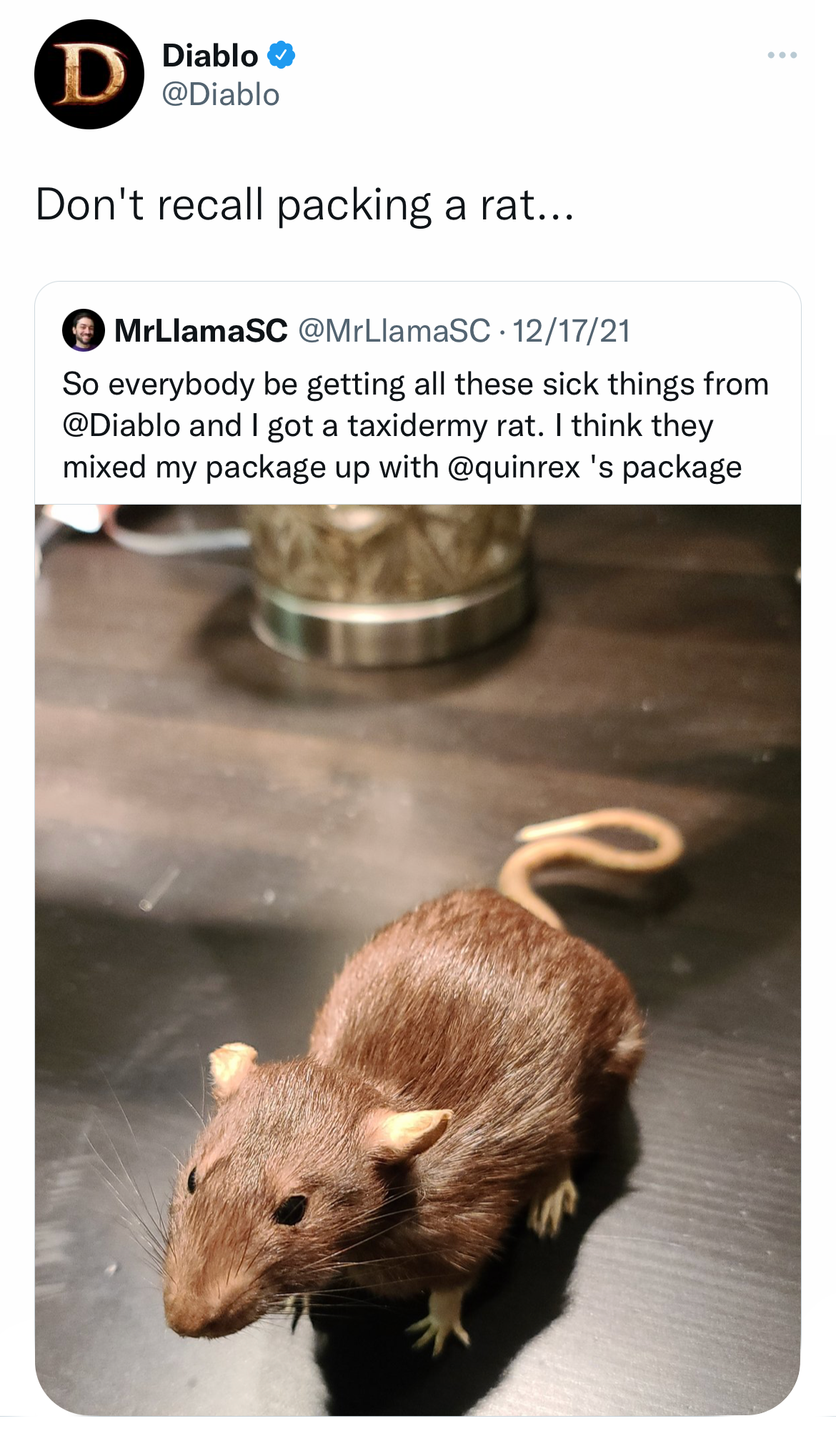 What We Did... To celebrate the holiday season, the video game franchise Diablo launched a Fooji campaign to honor His1 loyal followers. Gifts were sent to fans across the country from the dungeon floors of Hell when they used the hashtag #HailDiablo. Along with franchise merch, blessings from the Dark Lord2 included skulls, taxidermy rats, gems, and, yes, even real human teeth.3